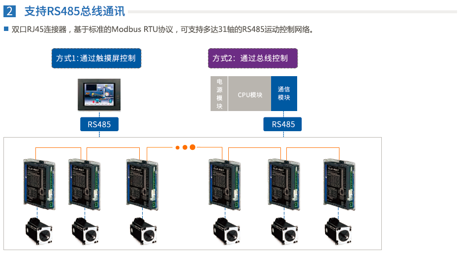 - 双口RJ45连接器,支持多达31轴的RS-485运动控制网络