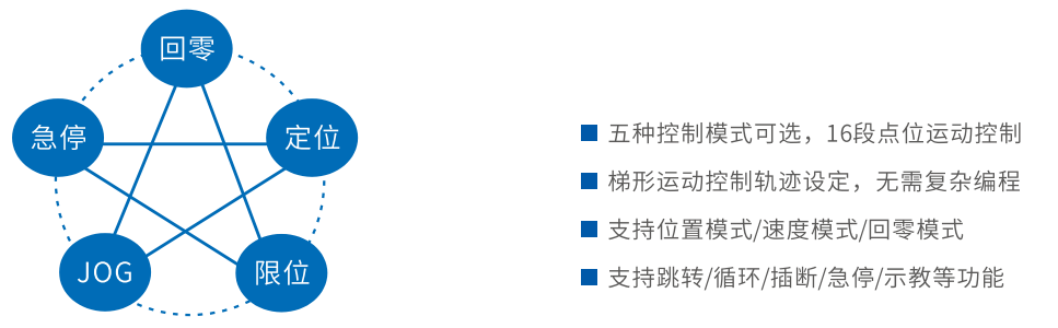 - 可配置16段路径程序,支持回零/速度/位置/JOG等功能