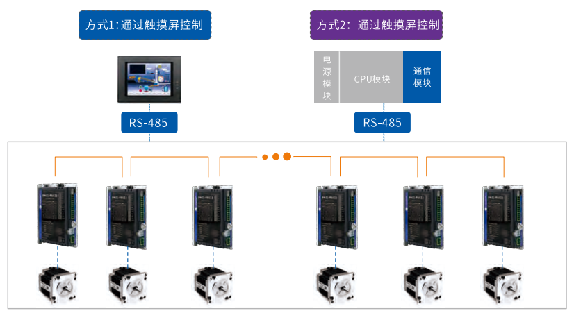 双口RJ45连接器,基于标准的Modbus RTU协议,可支持多达31轴的RS485运动控制网络。