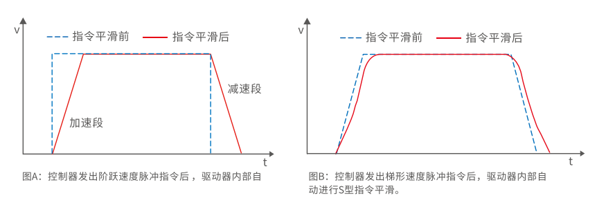 内置T型和S型指令平滑技术、减少负载运动和传动机械引起的瞬时扰动,使得电机运动更稳定平滑。