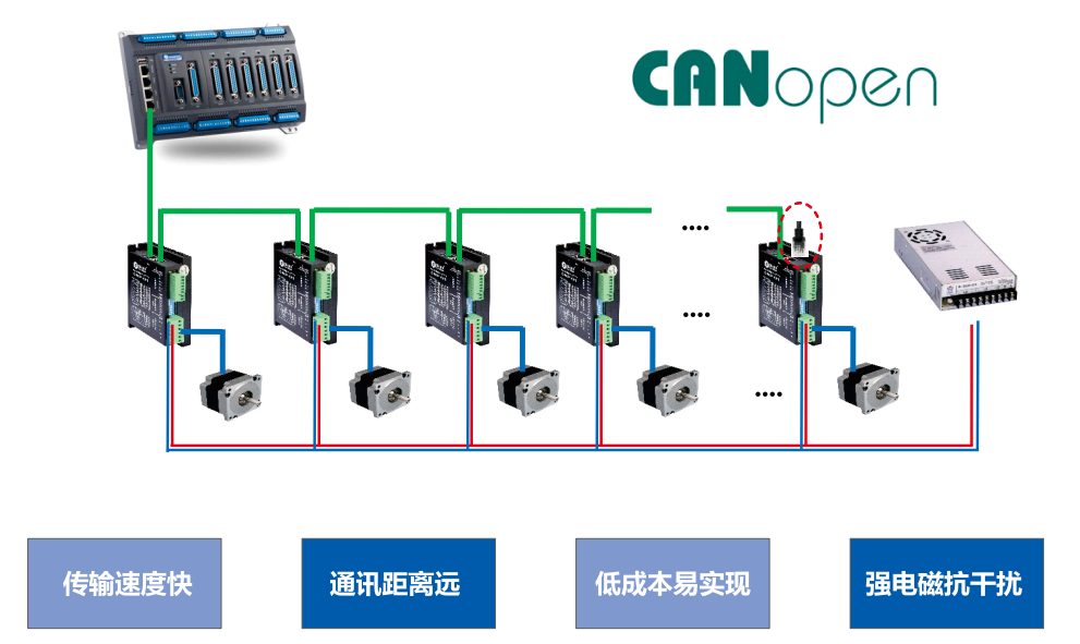 与传统步进驱动器相比,该驱动器特别适合远距离、多轴联动的场合下应用,可以减少布线,增强驱动器运行的可靠性,如锂电池生产线、雕刻设备、激光设备、电子加工设备、舞台设备、医疗器械、机器人等。
