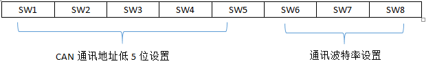 | CAN地址ID(低五位) | SW1 | SW2 | SW3 | SW4 | SW5 |