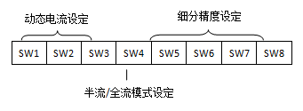 静止电流可用SW4拨码开关设定,off表示静止电流设为运行电流的一半,on表示静止电流与运行电流相同。一般用途中应将SW4设成off,使得电机和驱动器的发热减少,降低能耗,可靠性提高。脉冲信号停止0.4秒后电流自动减半,发热量理论上减至25%。
