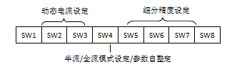 DM556驱动器采用八位拨码开关设定细分、运行电流、静止半流以及控制参数的自整定。详细描述如下