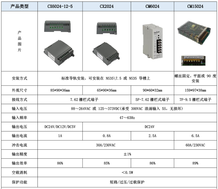 3、超宽输入电压范围88~264VAC或125~373VDC